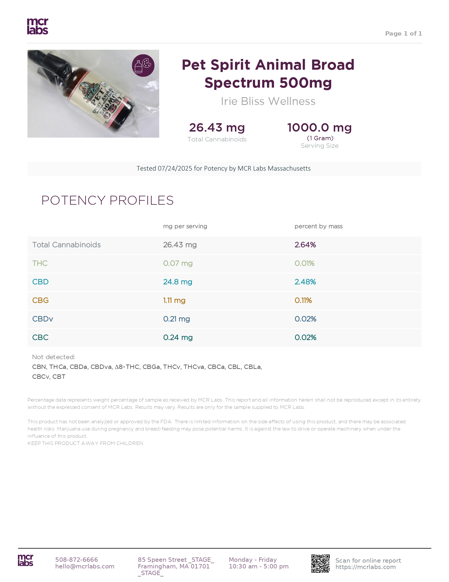Irie Bliss Spirit Animal Pet 500mg CBD Tincture